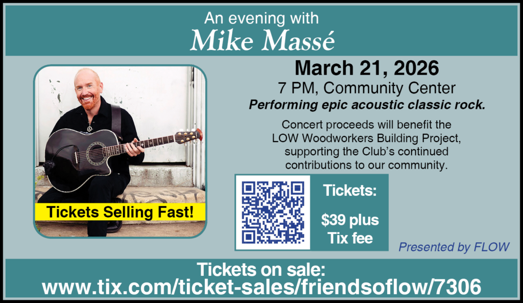 Qualifications: Applicants (ages 7 -18) must have parental approval, live in the LOW community, and complete an application that includes a paragraph on why they want to be selected. A riding scholarship would cover the cost of a block of five riding lessons (valued at $245) at the LOW Equestrian Center. For further information, see UPDATES on the FLOW website.